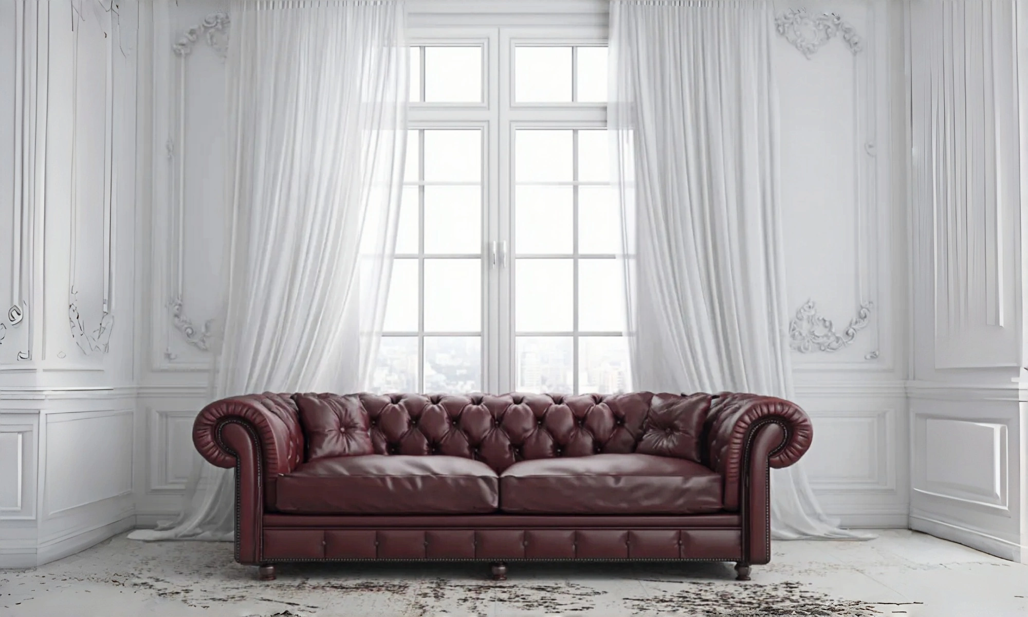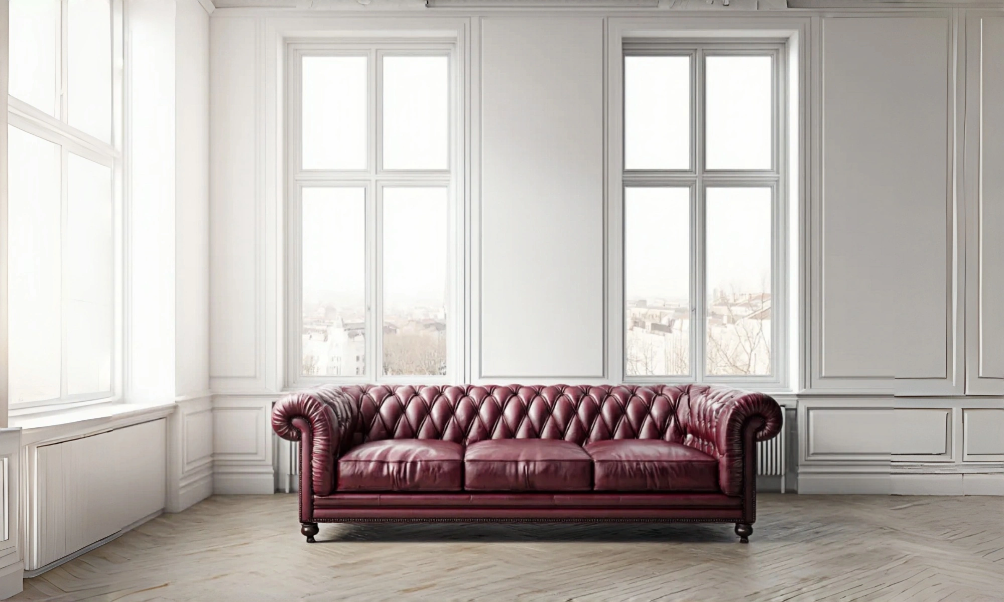 Chesterfield Dreisitzer aus Echtleder 230x90x78 cm - burgund - für Wohnzimmer - klassisches Design